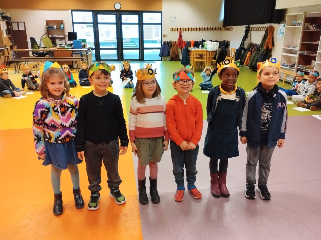 Ce fut l’occasion de faire admirer nos belles couronnes, de réciter la poésie  « Bonne année » et de chanter « La galette » de Pierre Lozère.