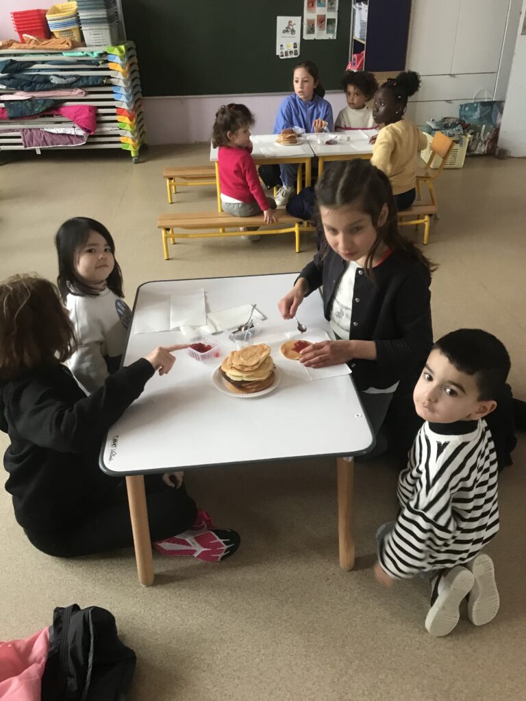 Mardi 13 février, les parrains et marraines sont venus nous offrir des pancakes qu’ils avaient fait dans leur classe.