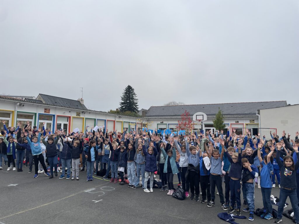 Aujourd’hui, l’école Saint-Michel se mobilise pour dire non au harcèlement scolaire. Tous les élèves du CP au CM2, les adultes et l’équipe de restauration sont réunis pour une journée de sensibilisation, habillés en bleu, symbole de notre engagement collectif.