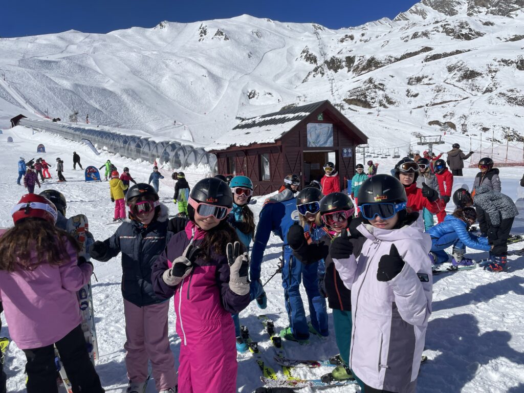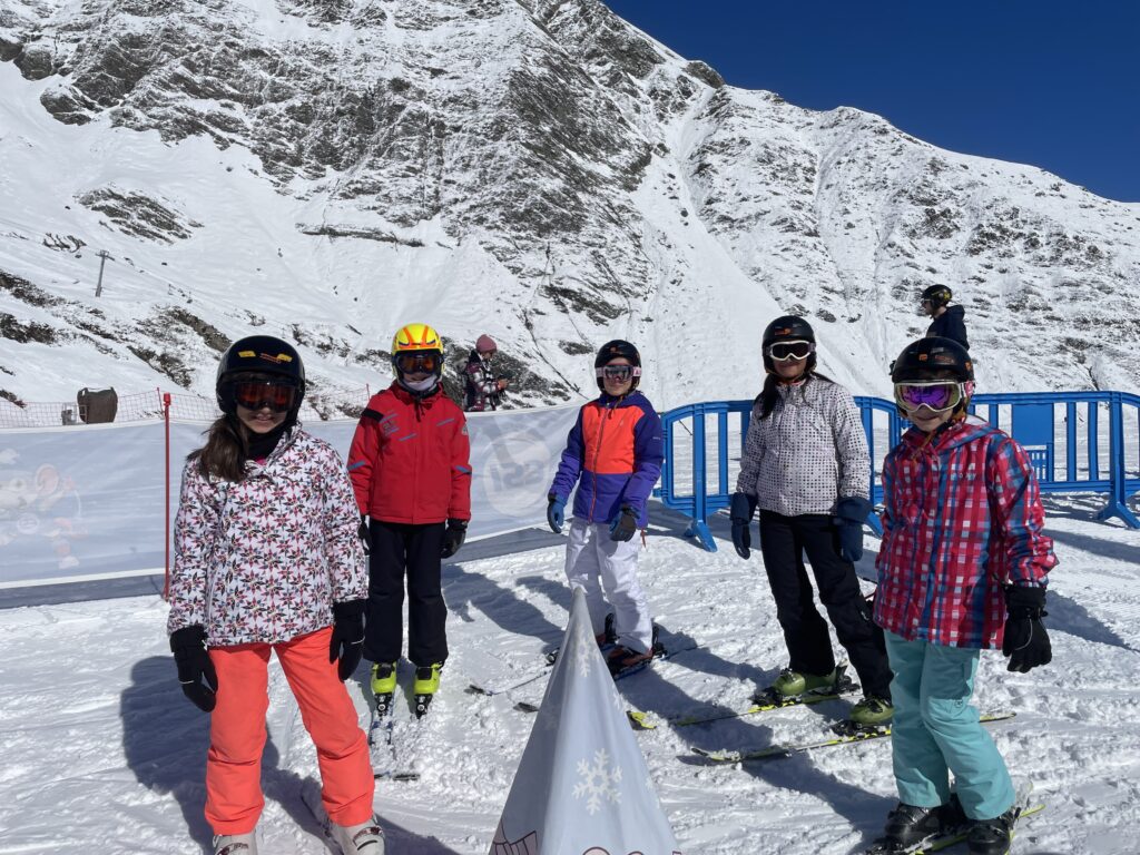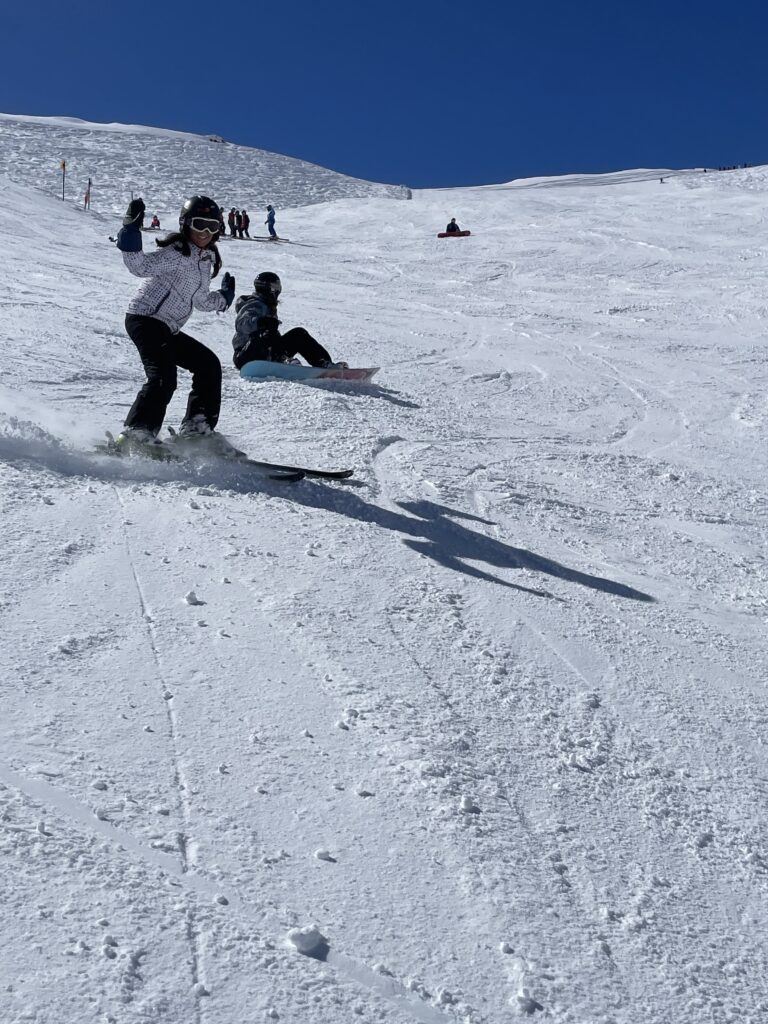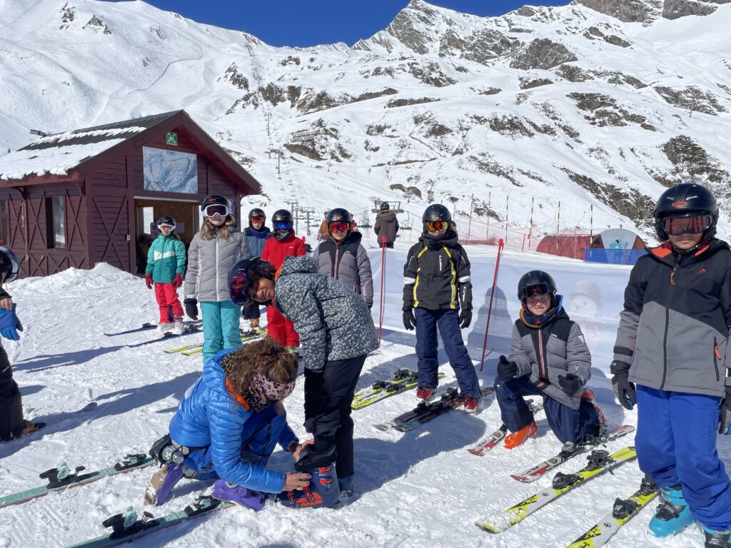 Pour les débutants :nous avons appris à mettre nos skis, les enlever, faire le « chasse neige, avancer tout droit, marcher en « canard » et » en escaliers », nous avons appris à faire des virages sur la piste de slalom …