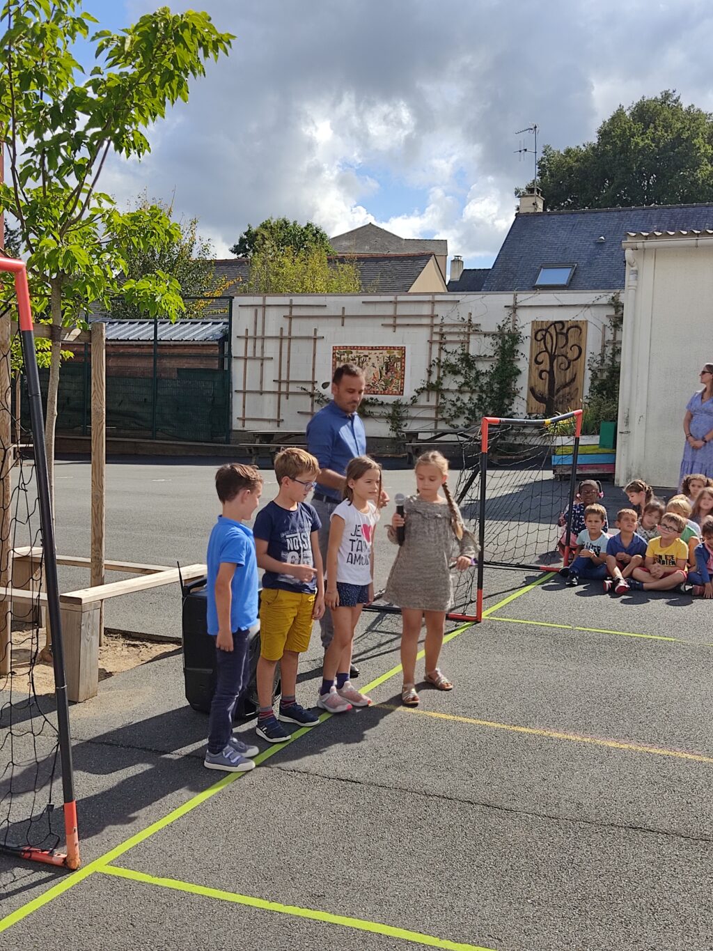 Toutes les classes d’élémentaires se sont réunies pour accueillir tous les nouveaux élèves de l’école. Ce sont des camarades de classe qui présentaient les nouveaux au micro. Ensuite nous avons…